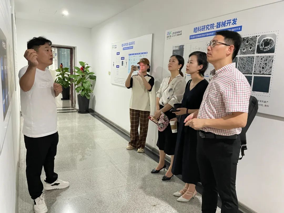 温医大2012届员工、睦科生物总经理孙昌正带领一行人参观了实验中心和科创中心,详细介绍了睦科生物的创业初心、企业定位、发展历程、人才队伍、技术研发等内容。他强调“轻资产,重技术,强运营”的经营理念,“服务与研发两条腿走路”的业务模式,“技术与创新”作为合作驱动力,从而在行业内稳步发展。
