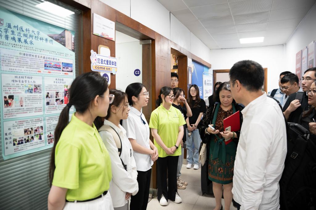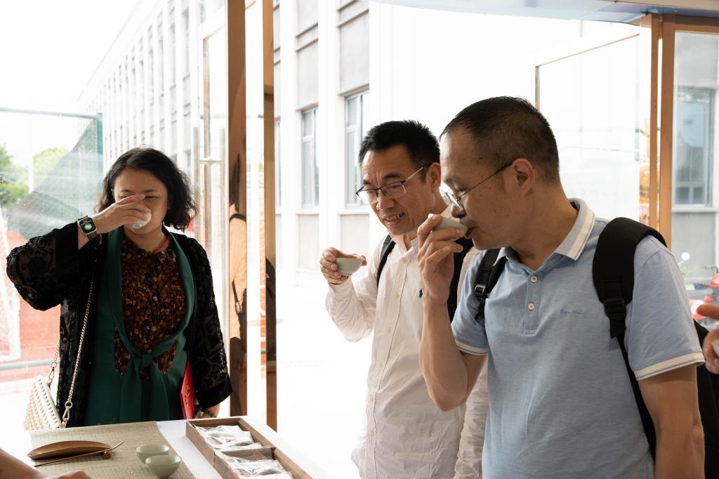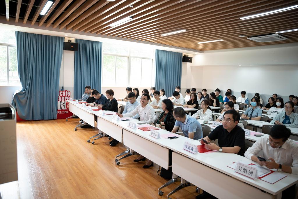 与会人员在老员工活动中心进行合影,随后走访参观老员工创业园。分别参观了公益创业区、科技创业区、综合服务区等员工创业工作室,并与创业园师生进行亲切交流。