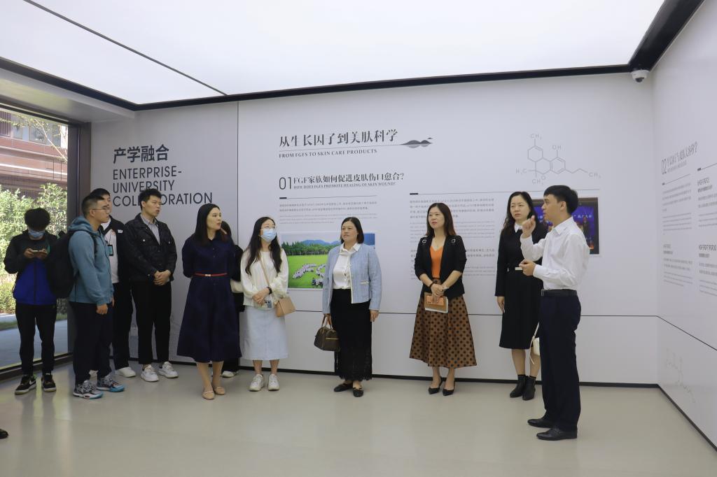 团队先后参观了美谷的研发中心、检测中心、成果展区、体验中心等,深入了解了浙南美谷助力国妆的前行步伐。