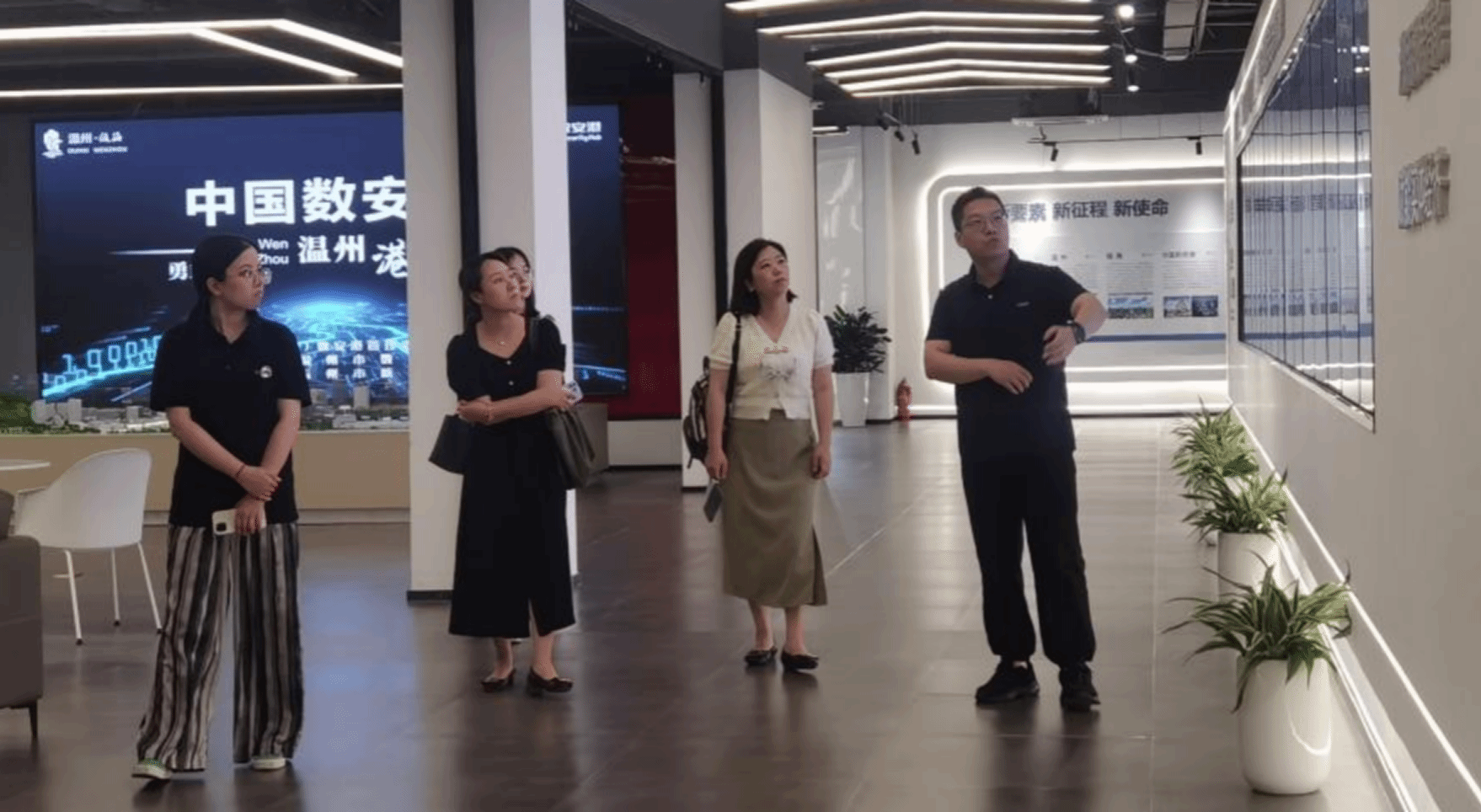 随后,一行人在中国(温州)数安港展厅深入了解了数安港为什么做、怎么做、和做成什么样,对数安港为“定规则破解不敢开放”“强技术 破解不会开放”“拓市场 破解不愿开放”所付出的努力和取得的成果深表敬意。