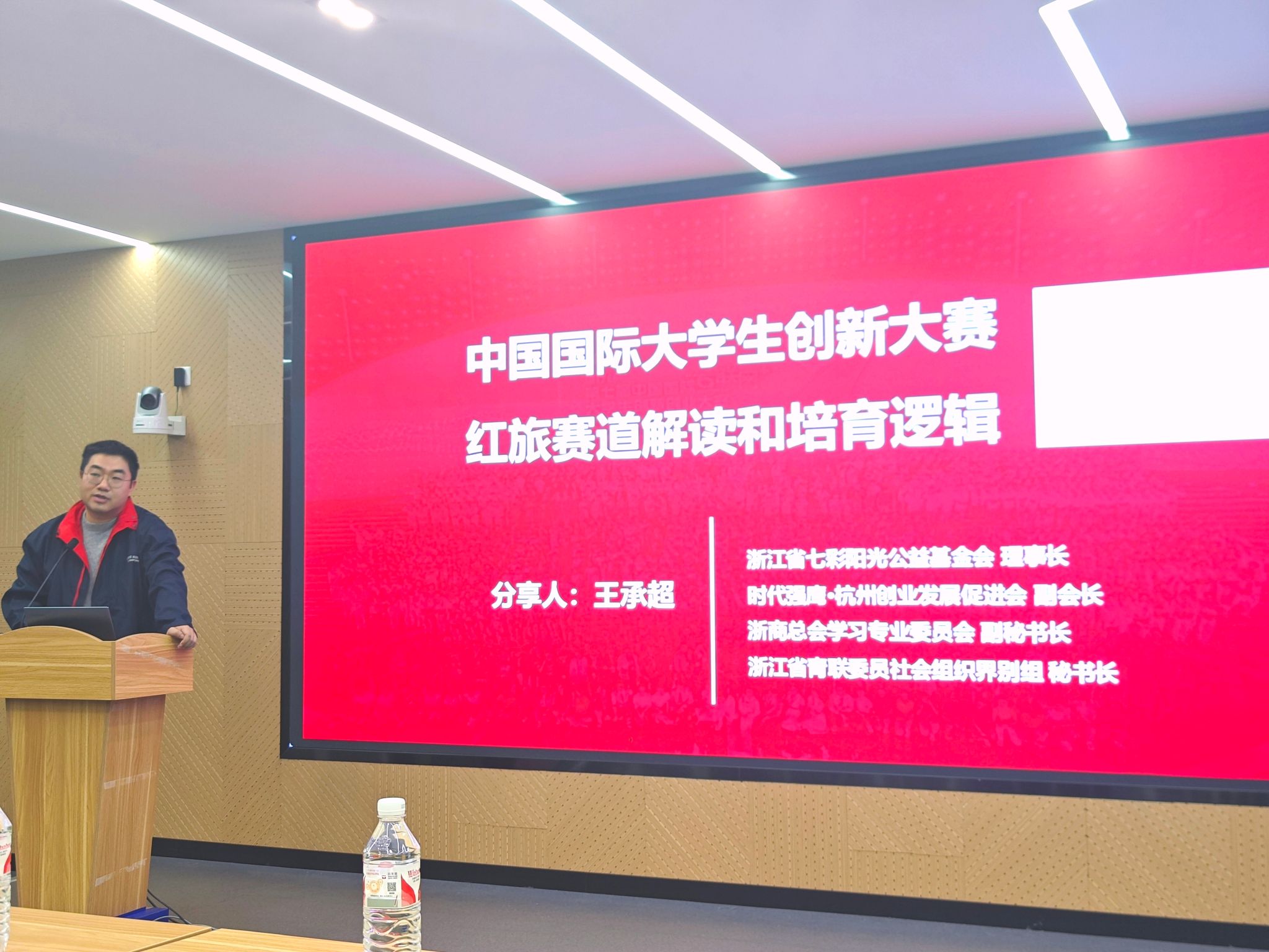 随后,曾春燕副经理作国际老员工创新大赛赛事解读,详细介绍了近几年公司团队在相关比赛中取得的优异成绩,鼓励大家点燃创新创业热情,助力自身发展,推动公司创新创业工作再上新台阶。浙江省七彩阳光公益基金会理事长王承超专家带来《创新大赛红旅赛道的选题和项目培育》指导讲座,全面细致地分享对红旅赛道的理解,抛出四个“源问题”和三个重点关注方向,还针对特色问题提出构建针对性能力的建议,并通过解读典型案例,为师生提供建设性指引。讲座后,师生们踊跃提问,王承超专家也一一地详细解答,随后现场展开了充分交流。最后,在百余位嘉宾见证下,启动仪式圆满落幕,现场气氛热烈。