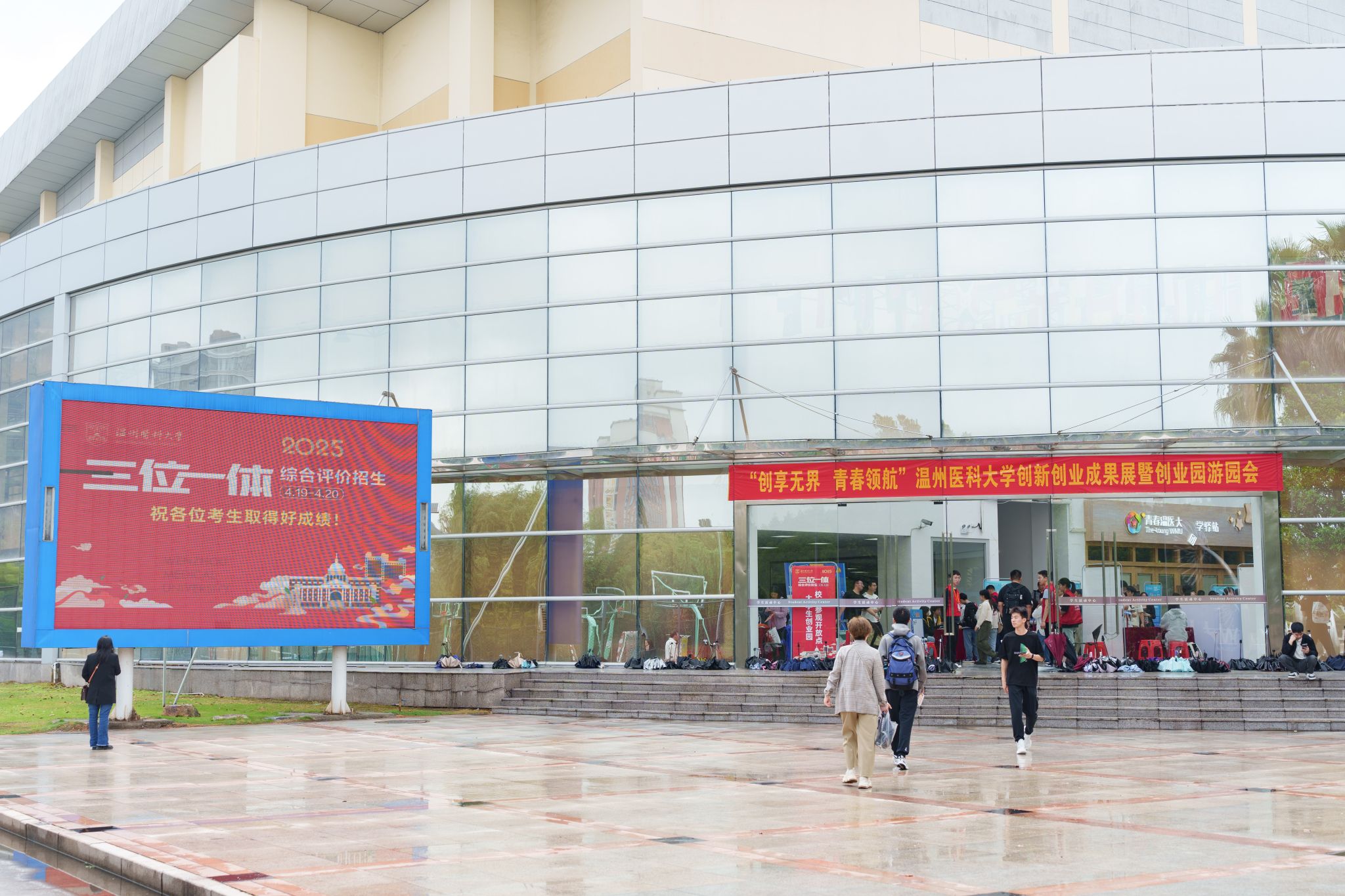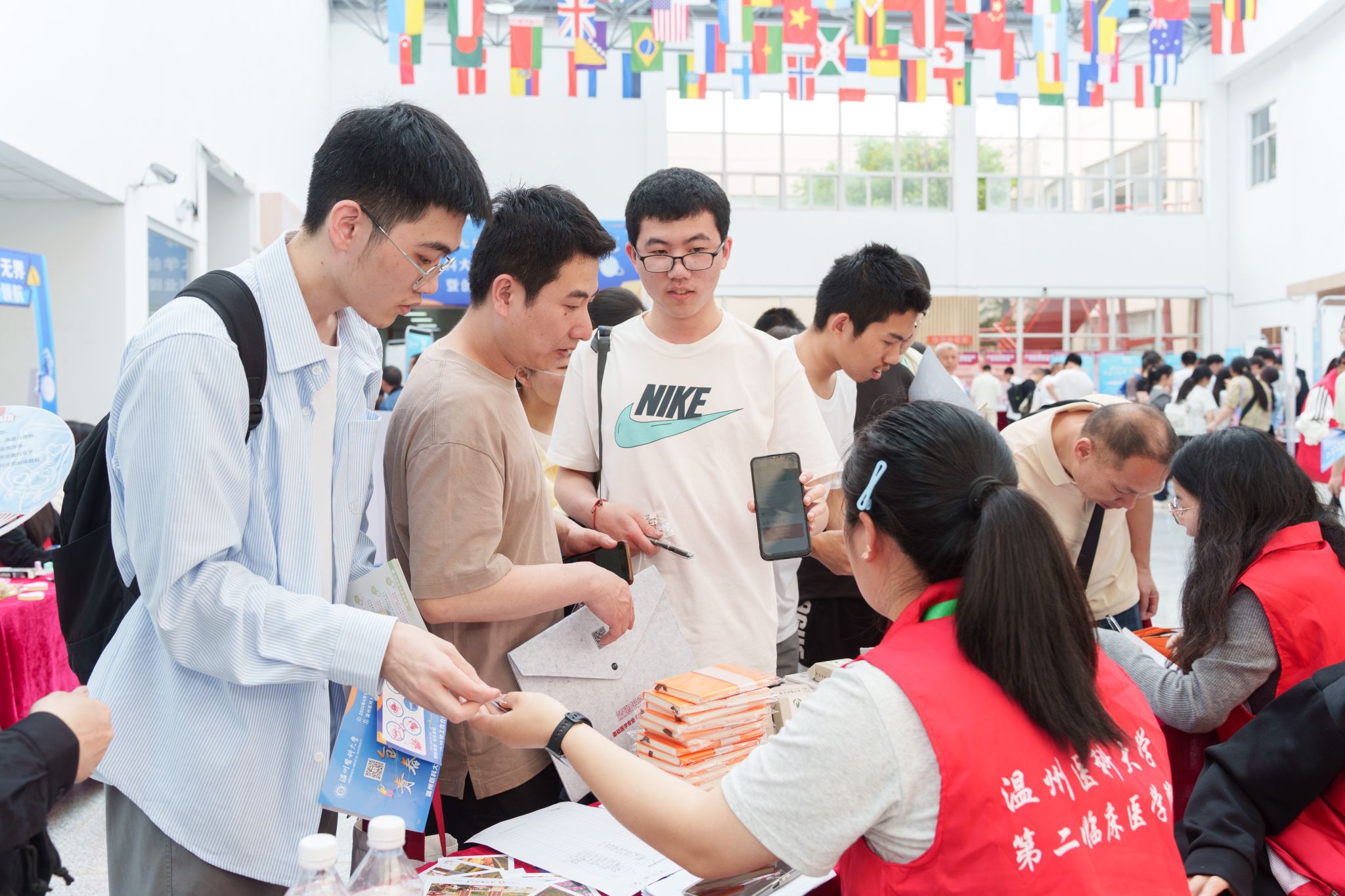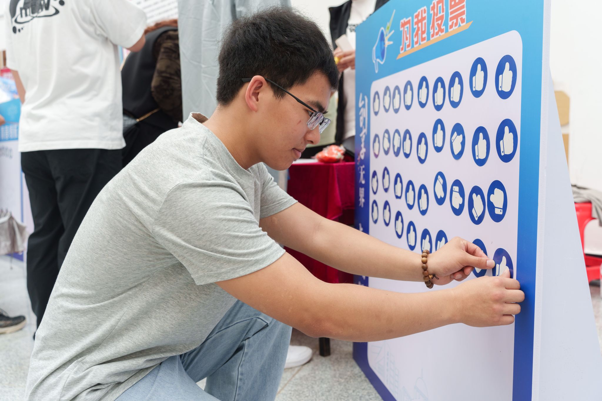 在创业园游园会现场,特色互动游戏和问答环节就像一个个神秘的“魔法盒子”,每打开一个都能收获惊喜。在完成任务过程中,考生和家长积极参与巴氏刷牙法实践、心肺复苏急救演练、眼球模型组装等活动,在实践体验中学习医学知识与技能。工作人员和志愿者全程热情服务,为考生发放活动券和投票卡,并引导他们参与集章活动。抽奖区奖品丰富多样,涵盖精致文具套盒、文创药皂、温医明信片等,每一份奖品都寄托着对参与者的美好祝福。此外,考生和家长还能化身“梦想投票官”,为心仪的公司展位投出宝贵一票。来自温州瑞安的李同学在接受采访时兴奋地表示:“温医大创新创业成果丰硕,创业园游园会的各项活动趣味性十足!我早上还幸运抽中一等奖,希望下午的考试也能顺顺利利。”