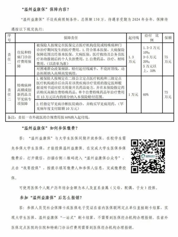 可在投保以上老员工医疗保险的基础上,自愿选择参保温州益康保等作为补充。具体内容可通过以下二维码查看保险方案后和自愿选择是否投保。